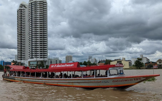 小刻みに船着場を止りながら、チャオプラヤー川の風を切る。